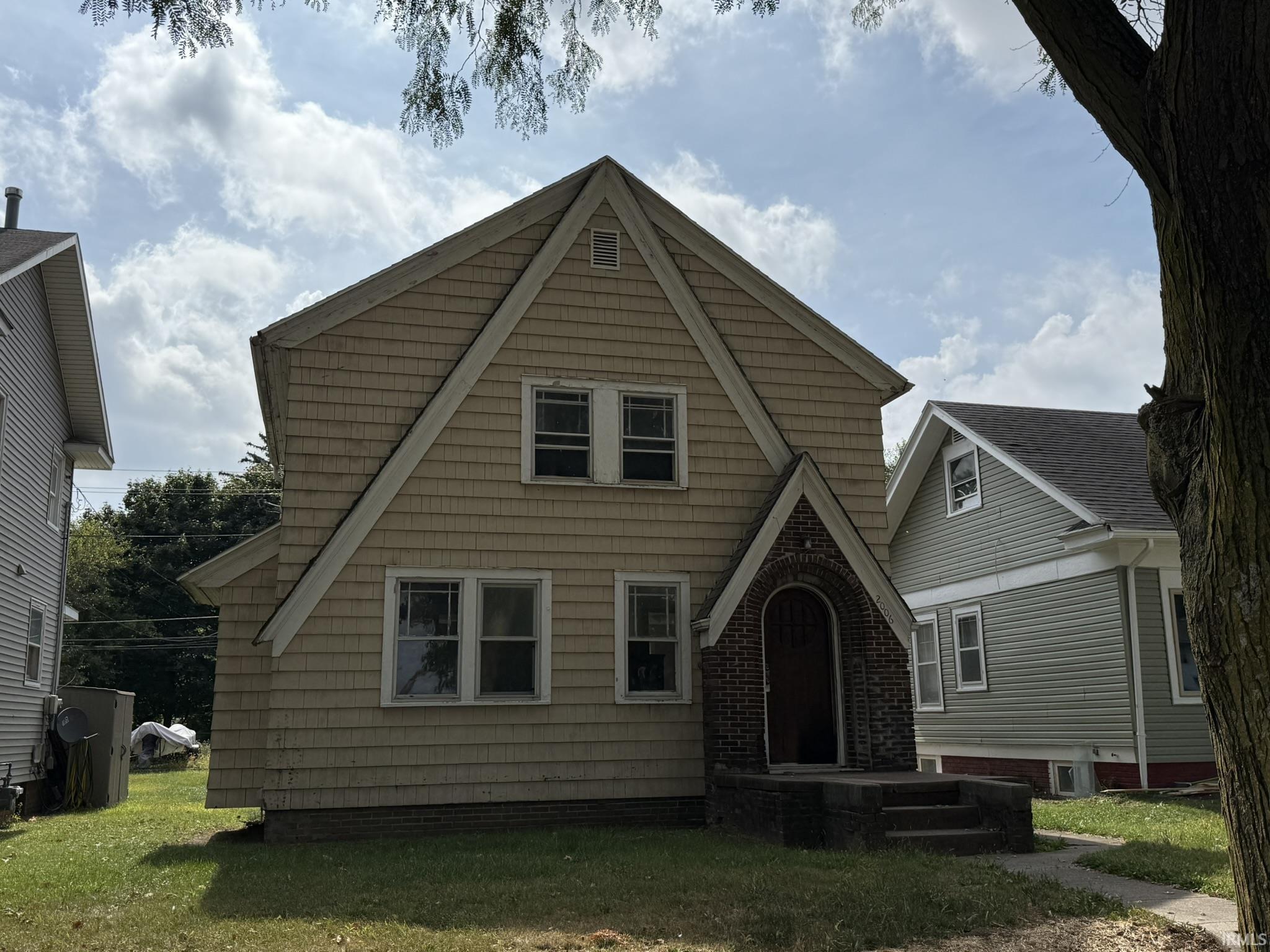 Classic Tudor Style 3 bedroom home, hardwood floors, & garage, Home is definitely a fixer upper with updates needed, however, it is close to move in condition. 3rd bedroom is on first floor and has an outside entrance possibly ideal for a beauty salon, barber, or office/studio. Was rented to long term tenant. NEWER complete tearoff and reroof $12,000 value.